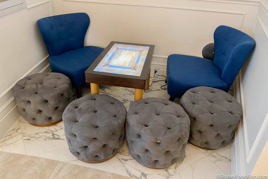 There’s also a kid section so your little ones can chill out while Mom and Dad check them in to the hotel for their AWESOME vacation! This table is interactive! So fun.