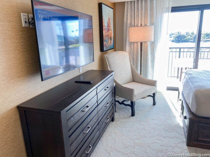 …a dresser with a TV right above it (hellooo, Test Track!)…