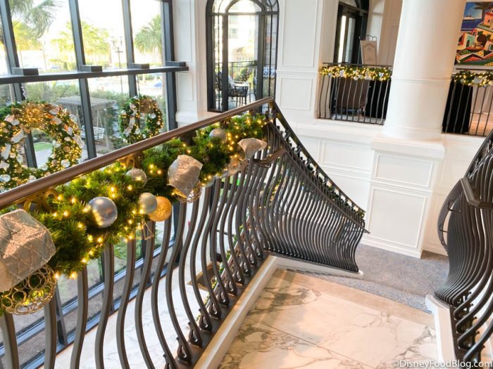 …you also get treated to a cozy and sophisticated lobby! There are multiple chairs, couches, and tables around the area so guests feel right at home. The light fixtures add a soft ambience that’s relaxing, while the Christmas decorations put you in a festive mood for the holidays!
