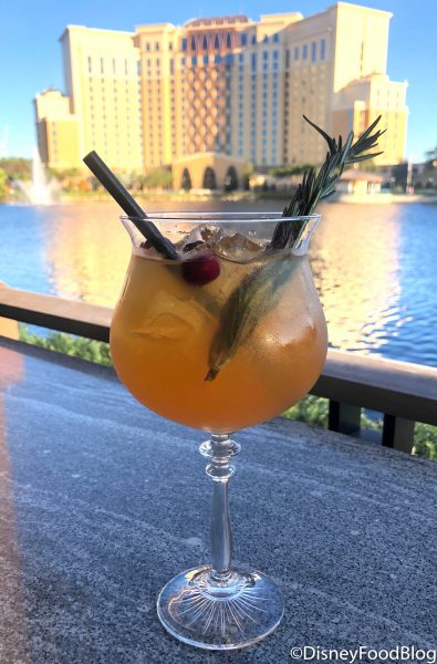 In the gorgeous Gran Destino Tower, we found a third secret holiday drink — a cranberry and blood orange sangria. We discovered it in the Barcelona Lounge. However, a Cast Member spilled a little tea and informed us that this secret holiday drink is also available in the Dahlia Lounge located on the 16th floor.