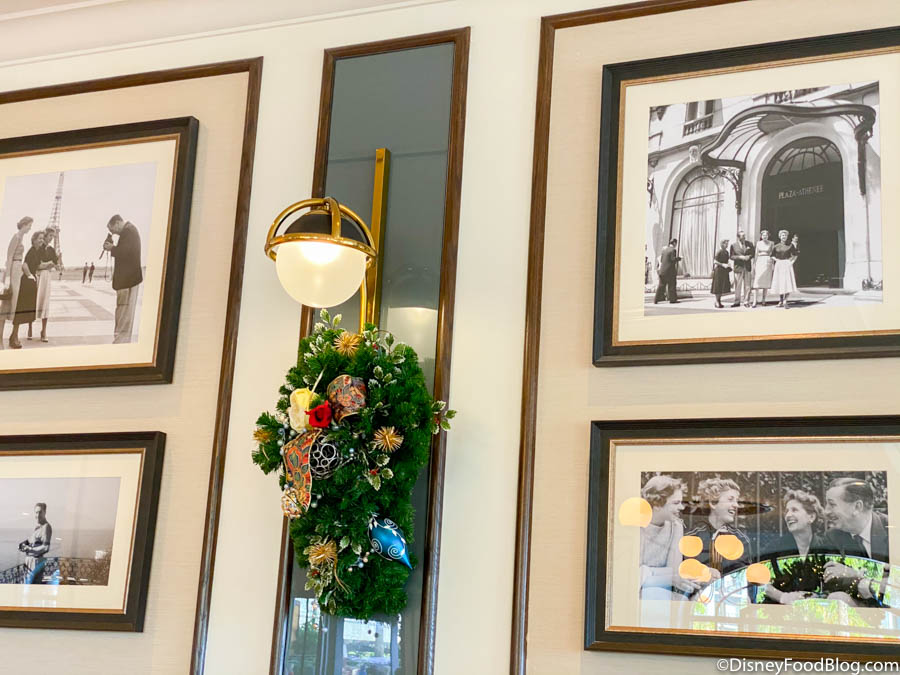 Artwork that adorns the walls includes classic black and white photography of Walt Disney on his travels around the world outlined by decorative wainscoting and a palette of calming, subdued colors.