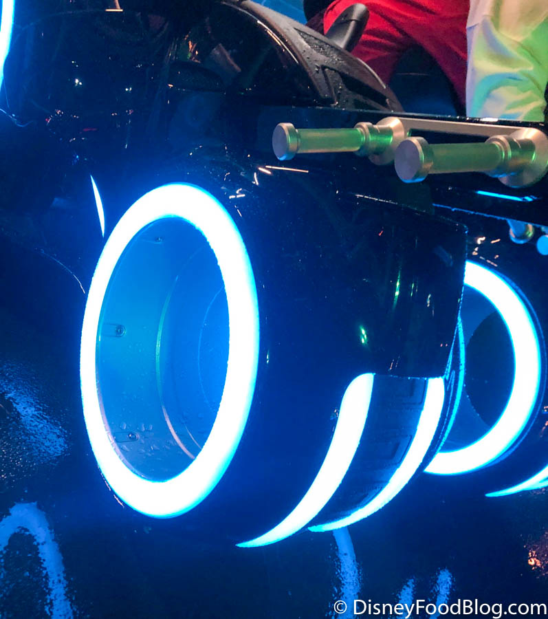 While Disney’s shared TRON’s new ride vehicles with us before, we weren’t expecting to actually get the chance to try ’em out until 2021 when the ride opens! You can get a better look here at the handles as well as the restraint that flips down onto your back, as the vehicle has you leaning forward similarly to a motorcycle!