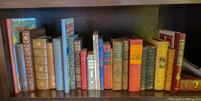 The other side of the room showcases a large bookcase holding a library of books similar to the ones Walt collected on his “Grand Tour” through the continent in 1935! There’s also a large community table for playing board games, or perusing a few large coffee table books that have been laid out!