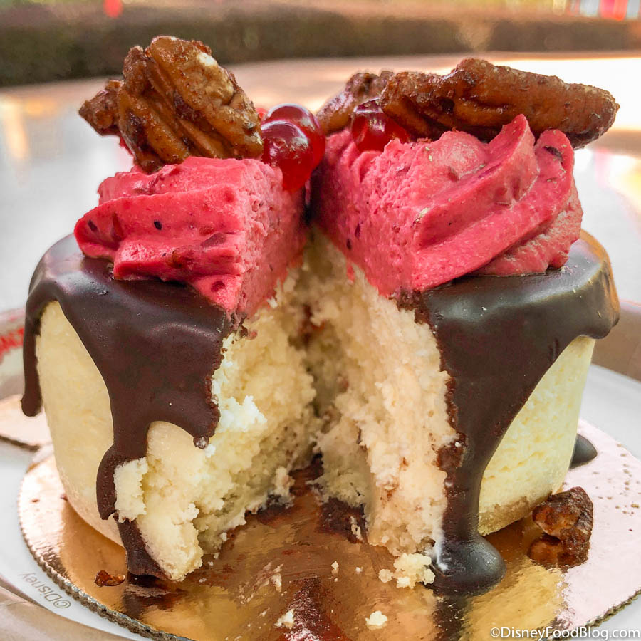 Plus, the rich chocolate really ties the entire treat together, along with the sweet crunch from the candied pecans! Even though there are lots of ingredients, the Sugar Plum Cranberry Cheesecake somehow stays light and fluffy with every bite (Disney magic??).