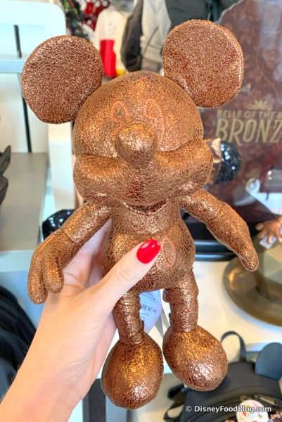We found the Belle of the Ball Bronze Mickey Plush at the Magic Kingdom today for $19.99. And as with any Disney color trend worth its pigment, there’s a TON of great merch to check out. And don’t worry — we’ll keep you up to speed with all of the Belle of the Ball Bronze treats as soon as they’re released!