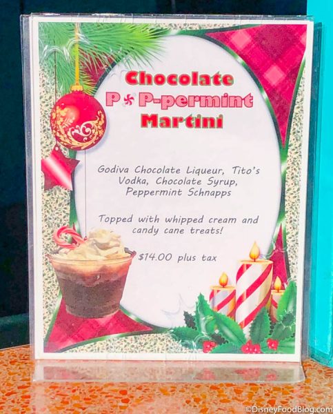 Try the Chocolate POP-permint Martini for yourself at Petals Pool Bar for $14! And while you’re there, why not do the Freddie over to the Everything POP! Food Court to check out the Gingerbread Bundt Cake (read our review of it here!)