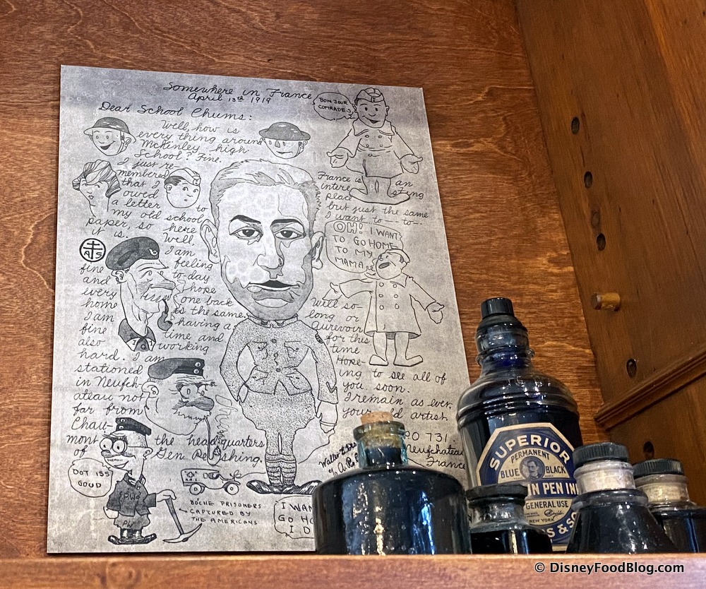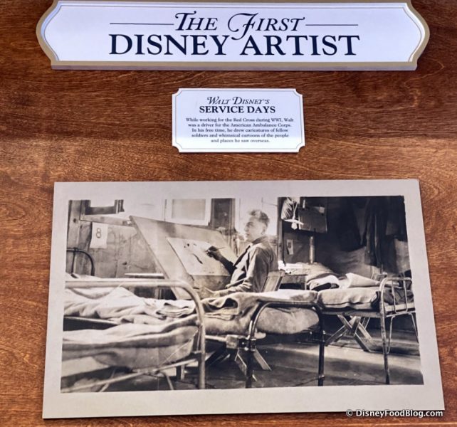 There’s also an homage to Walt Disney, the first Disney artist, including photographs from his service days…