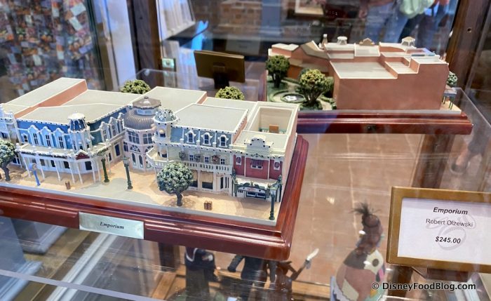 There are also floating display cases throughout the room. This one held several Disney World miniature landmarks that were made by Robert Olszewski. We’re more into his PokitPals which are less expensive and MUCH more portable, but these buildings are pretty cool too!