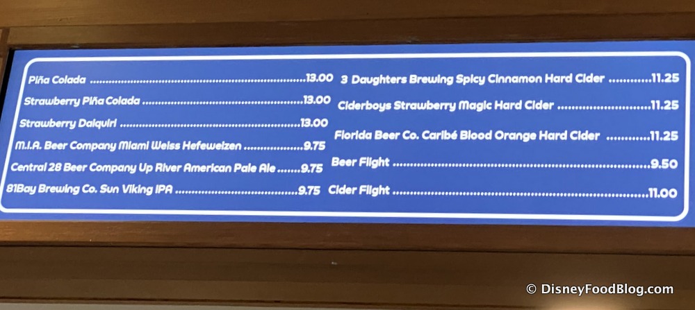 The bar at Epcot Experience is also still open! They’re crankin’ out some mean Piña Coladas, but they also have a fantastic selection of American craft beers and ciders!