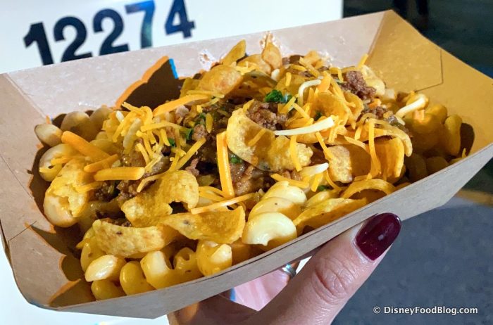 Now, we noticed that the Mac and Cheese Food Truck was dishing out their mac and cheese in big cardboard boats instead of the bowls they’d been using previously. To us, the portion looked different, but a Cast Member assured us it was the same serving size as in the past.