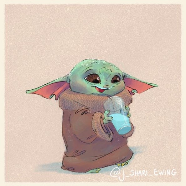 J. Shari Ewing also accepts commissions on her website and sells prints of some of her work so if you’re in the market for some new art (both cute illustrations and beautiful fine art pieces), check her out! This Baby Yoda series certainly caught our attention. 😉