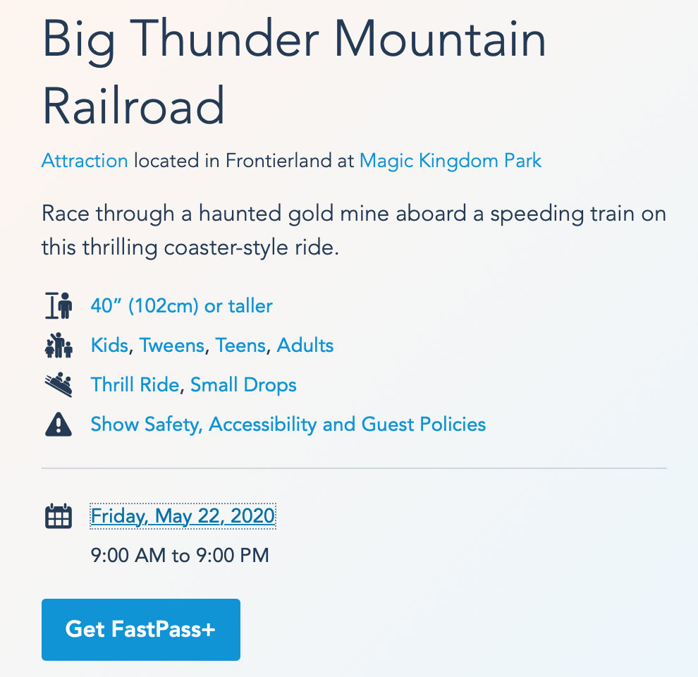 And when you fast-forward a few weeks, you’ll see the times for the attraction become available again starting May 22nd, 2020.