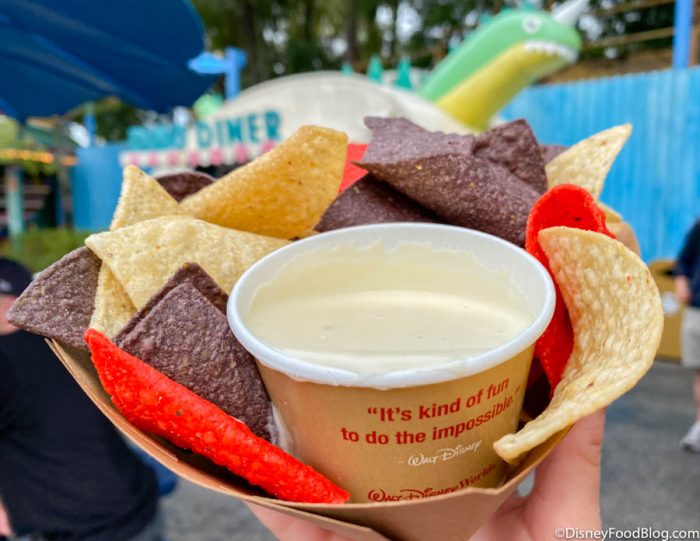 The Dino Diner over in DinoLand U.S.A. is participating in the sampler with a brand new item, Chips and Queso! You already know we LOVE us some chips and dip.