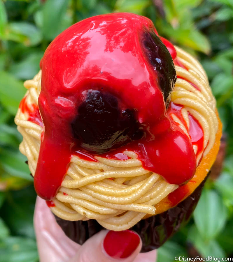 We’ve seen lots of spaghetti and meatball cupcakes in Disney World before — not least of which the guest favorite Spaghetti and Meatballs cupcake over at Mama Melrose’s!