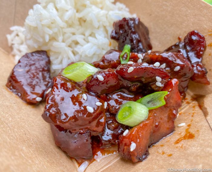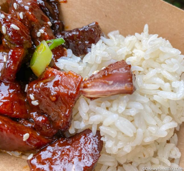 The Char Siu Pork with Sticky Rice is priced at $6.29 or a snack credit on the Disney Dining Plan (That’s a GREAT Value for this mini meal!).