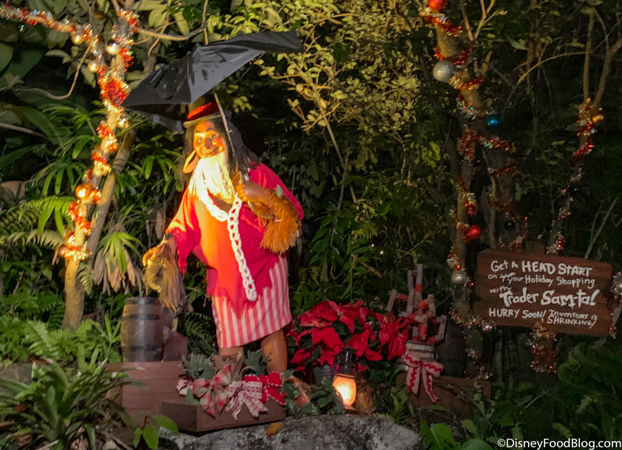 And be sure to swing by Magic Kingdom before the holiday season ends to check up on Trader Sam’s proprietor, Trader Sam…er…Samta at the Jingle Cruise!