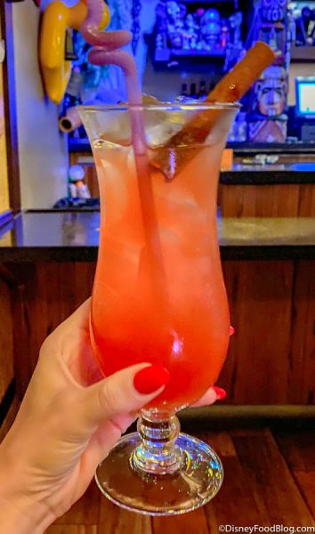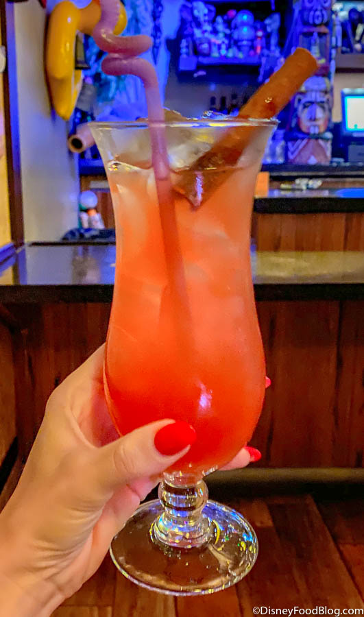 Let’s just say the rum is VERY pronounced on this one! Luckily, the cinnamon and spice flavoring balances it out well making it a very drinkable option. It is also available for an additional charge with a limited time (and super unique) Holiday Nutcracker Tiki Mug. You can NEVER have too many tiki mugs, are we right???
