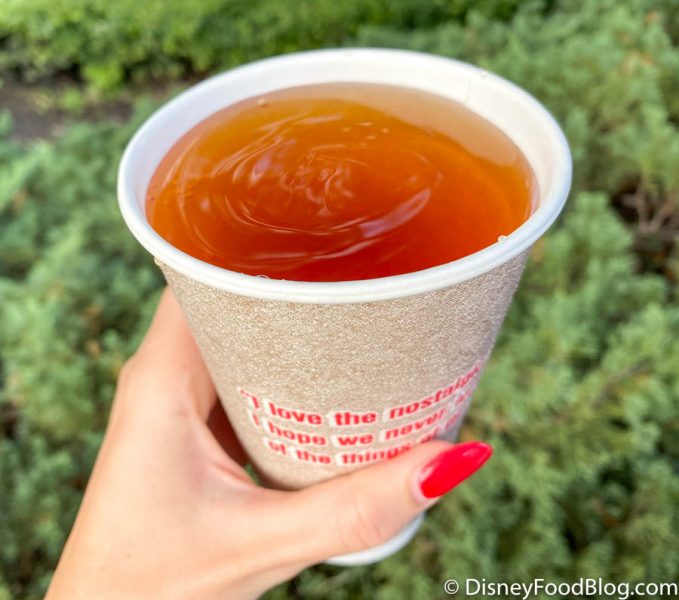 Disney World is getting ready for the holiday by bringing us a few more festive eats — and drinks! We stopped by the Refreshment Cart in the Castle Hub Area of Magic Kingdom and spotted a new drink that is absolutely getting us into the holiday spirit.