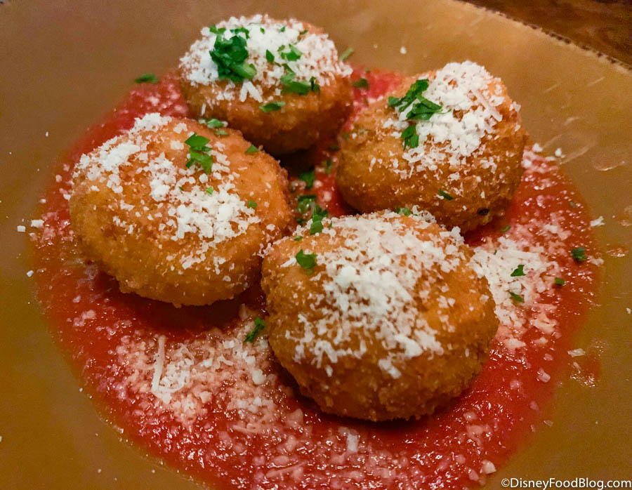 These beauties come as an order of three, and sit on a bed of triple cheese polenta with tomato sauce.