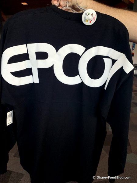 And while black isn’t a color that comes to mind right away when we think about Epcot, (usually we think of pastel purples and pinks like Figment or rainbows of bright colors like the ones you’ll see at Epcot’s International Festival of the Arts or Flower and Garden Festival), the new Epcot Spirit Jersey looks ultra-modern and sleek — kinda what we’re expecting Epcot to look like once its transformation is complete!