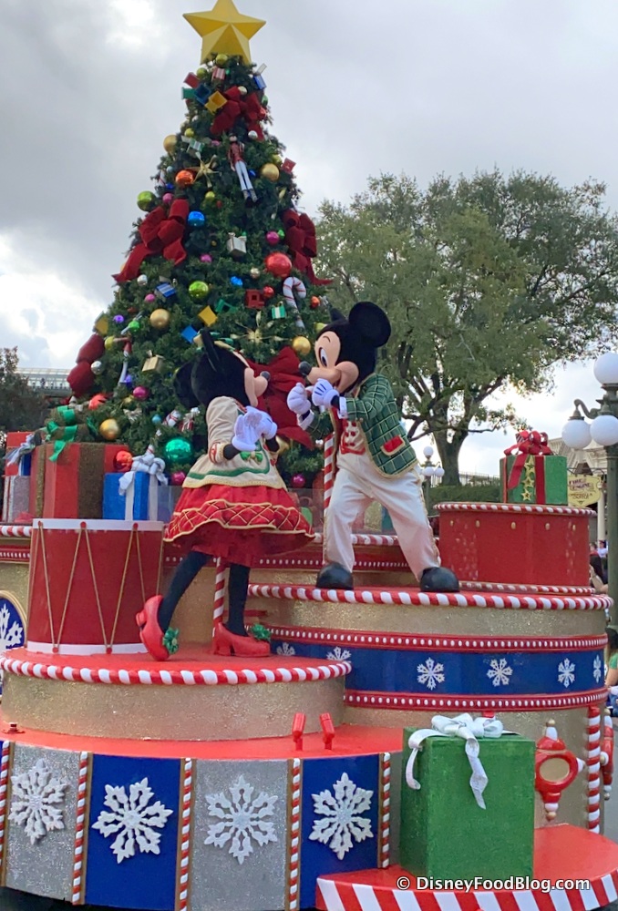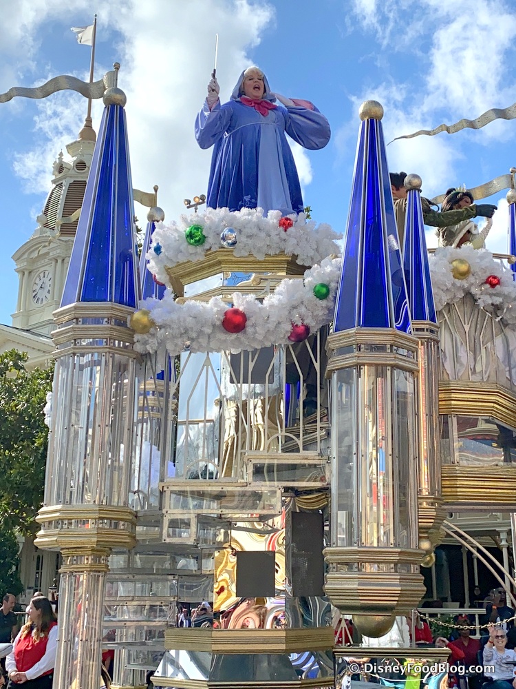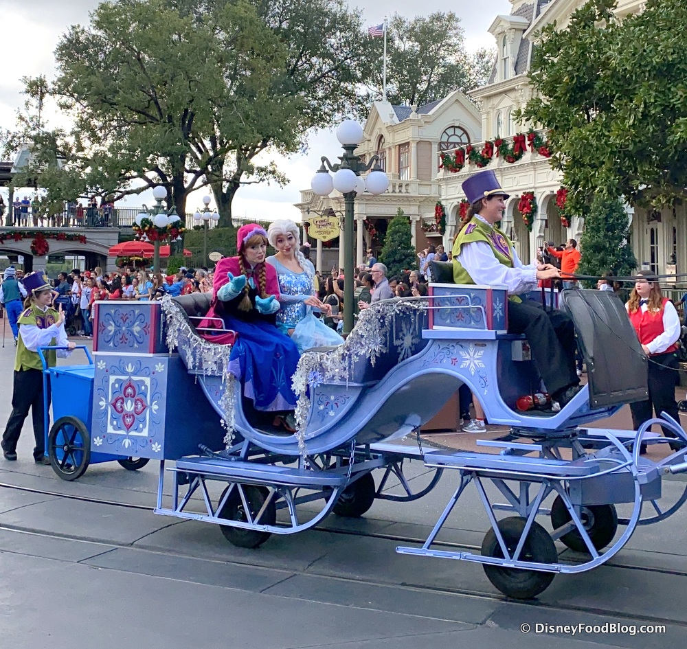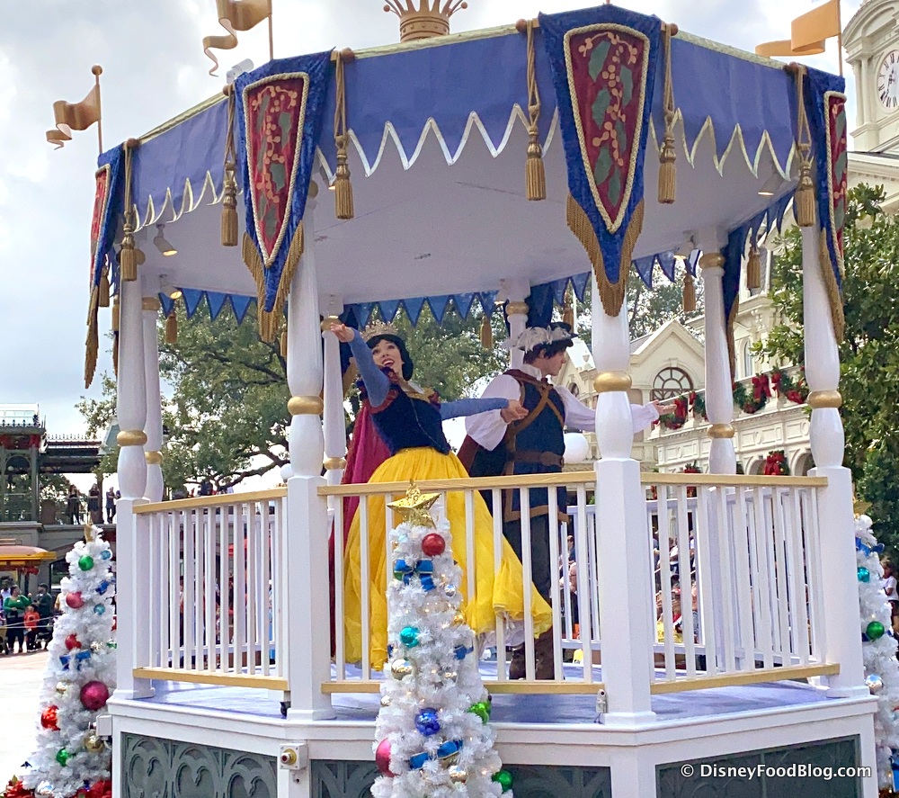 This is one of our FAVORITE parades to watch at Disney World! The parade is currently scheduled for 12 PM and 3 PM every day until December 31st! And for our friends spending the holidays at home this year, we’ve got a few pics to share with you! We saw Cinderella and Prince Charming rolling down Main Street in their well-appointed carriage!