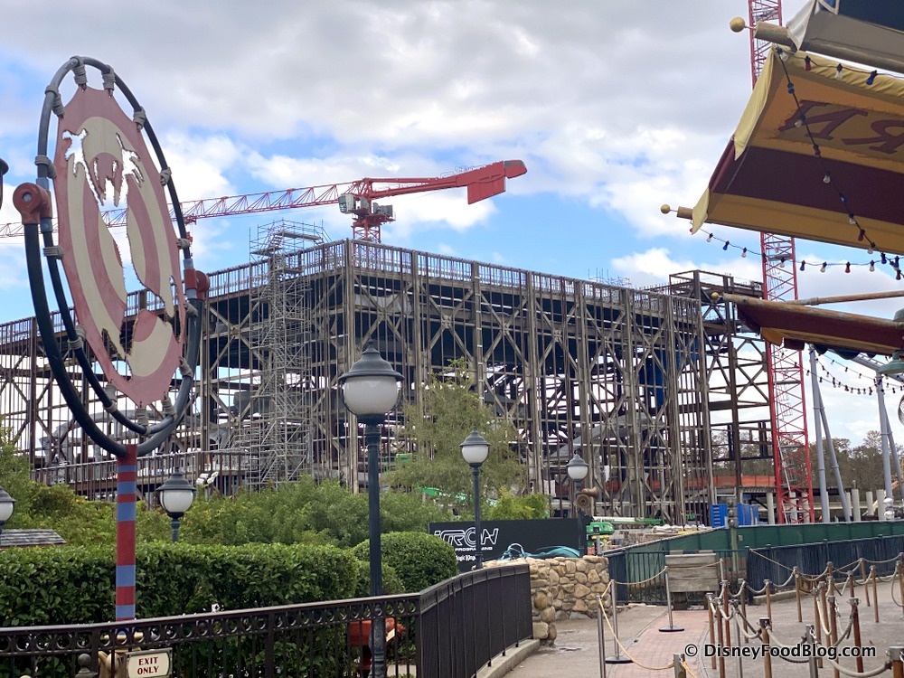 TRON: Lightcycle Run construction continues! We can hardly stand to wait until 2021 when the new rollercoaster is slated to be completed! The work on the show building seems to be progressing more rapidly now that the outer track is finished!