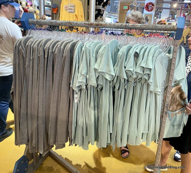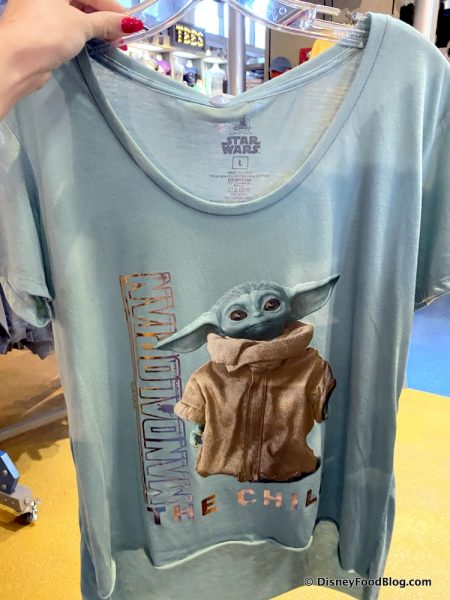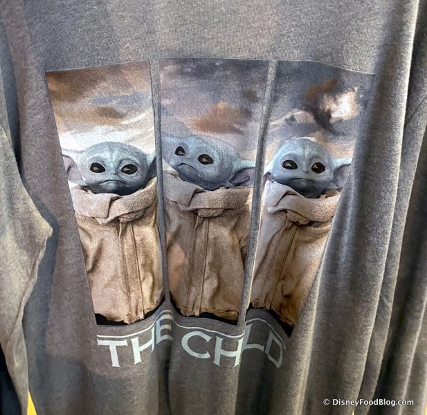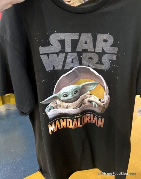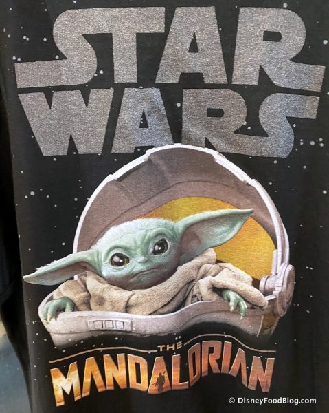 We saw the new Baby Yoda Shirts on a rolling rack at Mouse Gear in Epcot today — it looked like they had a bunch of sizes still in stock, but people were circling ’em like a ham on Christmas day, so best make haste if you see one you want!