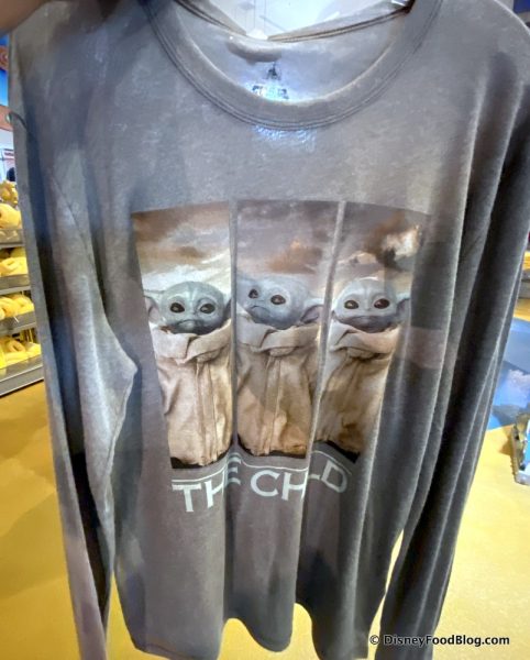 There was also a Baby Yoda Long Sleeve Shirt for $39.99. The tryptic design showcases the many moods of Baby Yodas…cute, pensive, and CUTE!