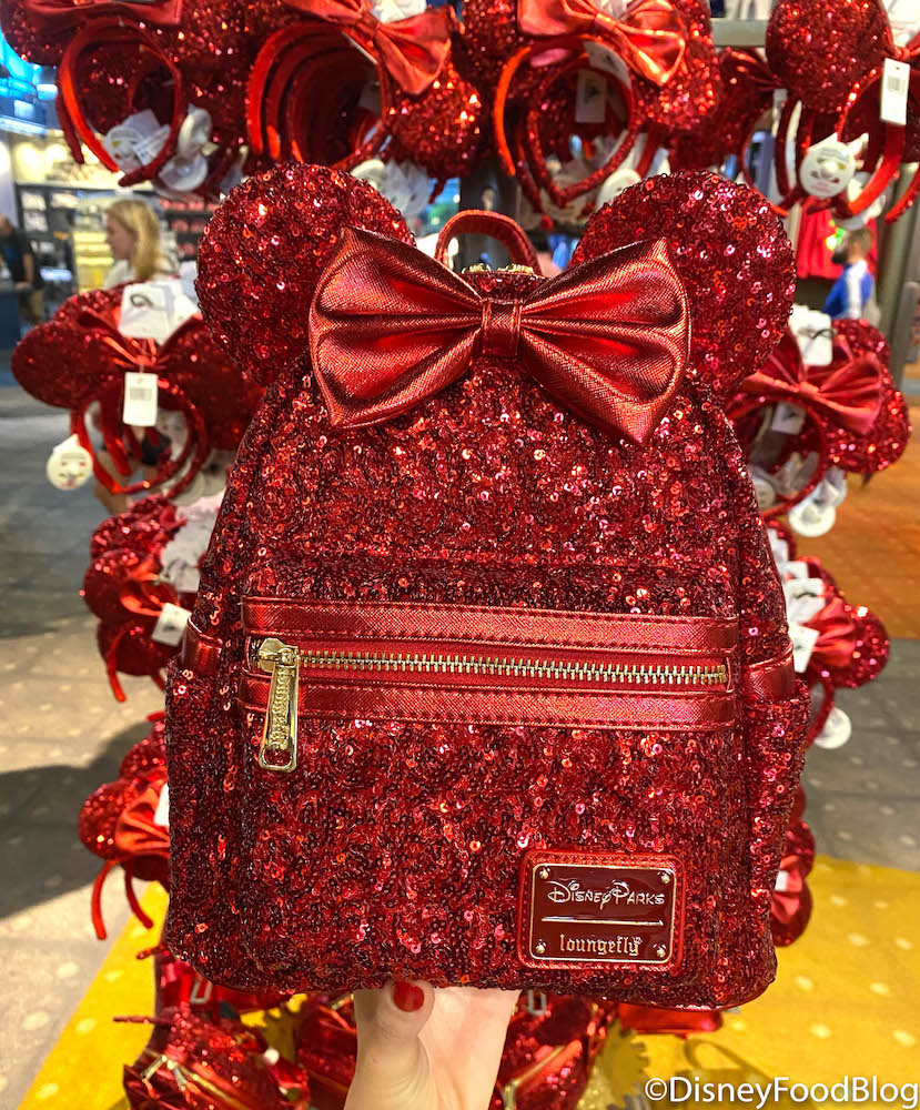 The Redd Loungefly Backpack is bright, sparkly, and arrr-some at Epcot‘s Mouse Gear!