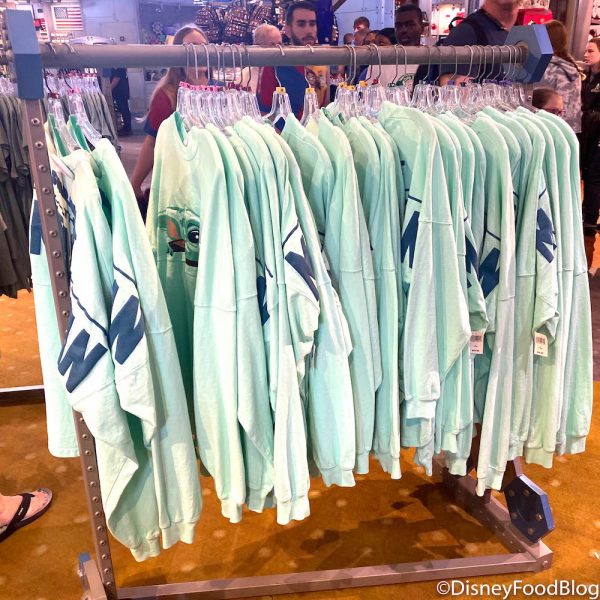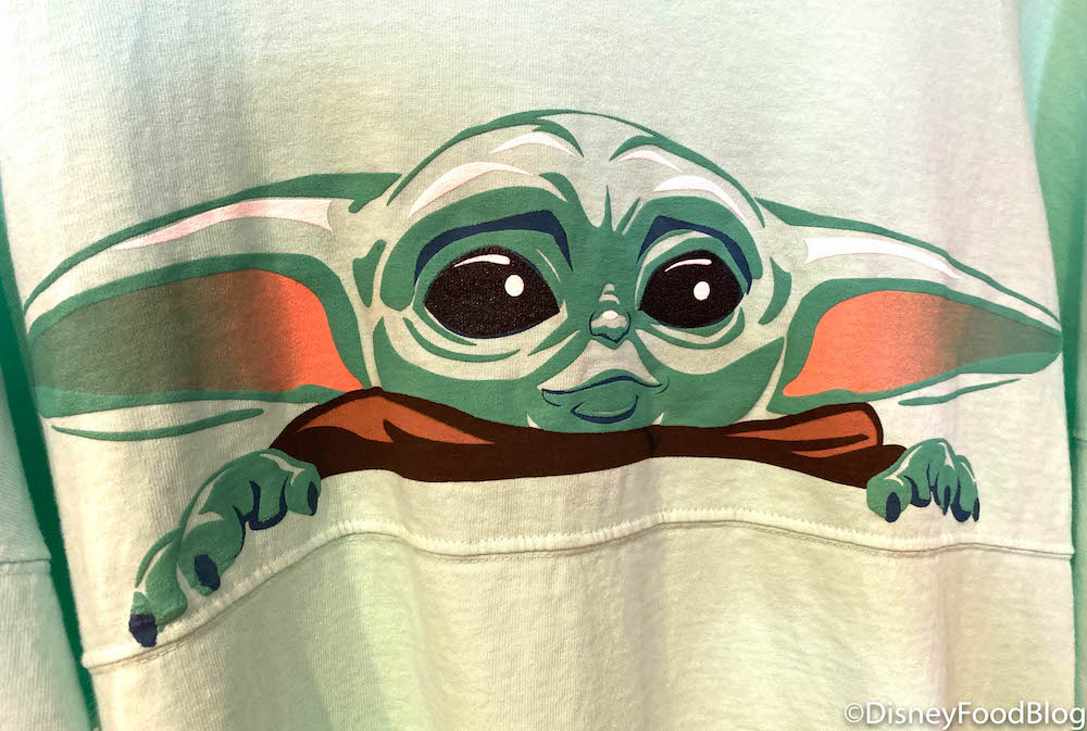 Although we saw the newest and cutest shirt in Disneyland already, the Baby Yoda Spirit Jersey has made an adorable appearance at Mouse Gear in Epcot. It costs $69.99 and we suspect that it will be a hot new merch item.