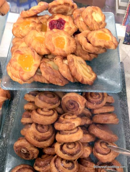 Likewise there were four types of Danishes: cherry, cheese, apple, and peach. Cinnamon rolls are available, too.