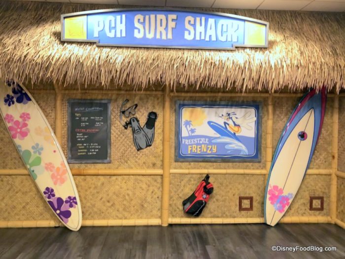 After you check in, there’s a little photo op area themed as the PCH Surf Shack!