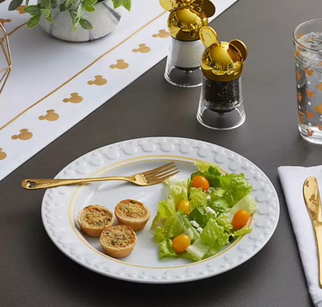 Now let’s switch gears from the fun treats and look at the WAY classy Mickey Gold Icon Collection! We think a table setting could get a major upgrade with the Table Runner for $24.99, Dinner Plates for $12.99 each, the Salt and Pepper Mill Set for $24.99, and the Glass Set for $24.99. Talk about pretty!