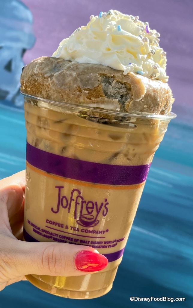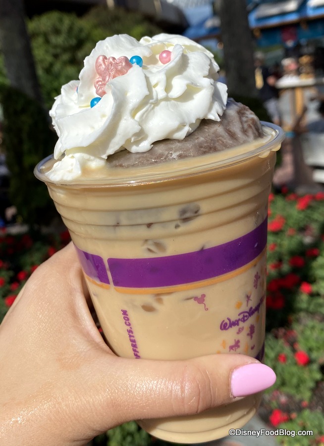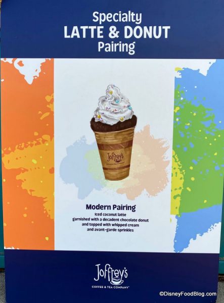 - Future World East: Modern Pairing: Coconut Iced Latte garnished with a decadent Chocolate Donut and topped with Whipped Cream and Sprinkles – $9.50
