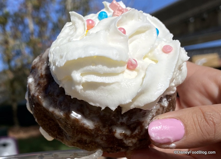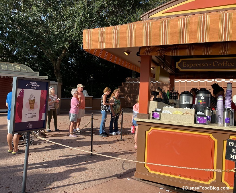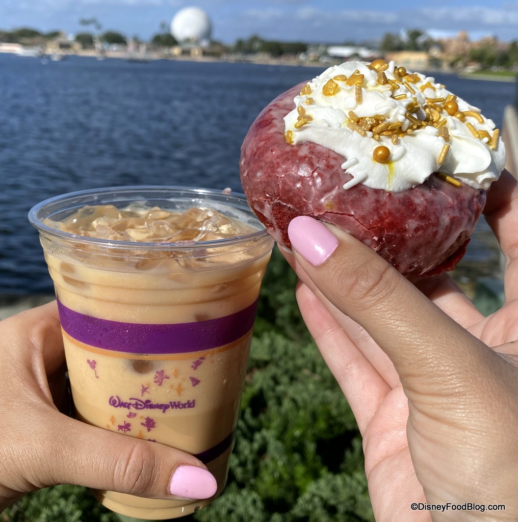 - The American Adventure: Baroque Pairing: White Mocha Iced Latte layered with a Red Velvet Donut and Sprinkles – $9.50