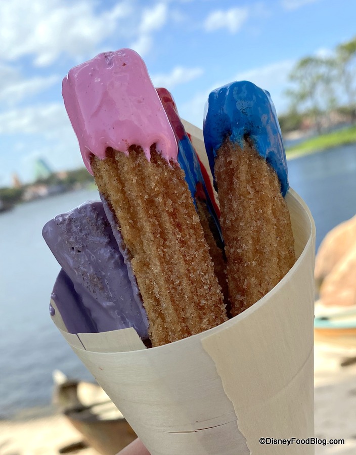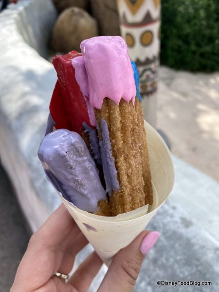 - Paintbrush Churros: Cinnamon-Sugar Churros Dipped in Colorful White Chocolate (KA) – $6.50, DDP Snack Eligible