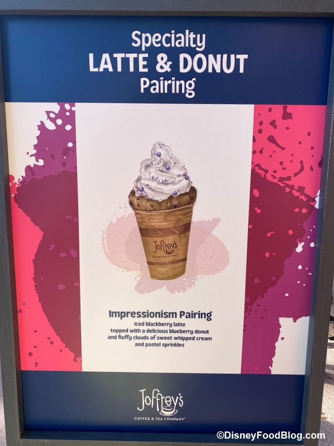 - Canada: Impressionism Pairing: Blackberry Iced Latte topped with a delicious Blueberry Donut and Sweet Whipped Cream – $9.50
