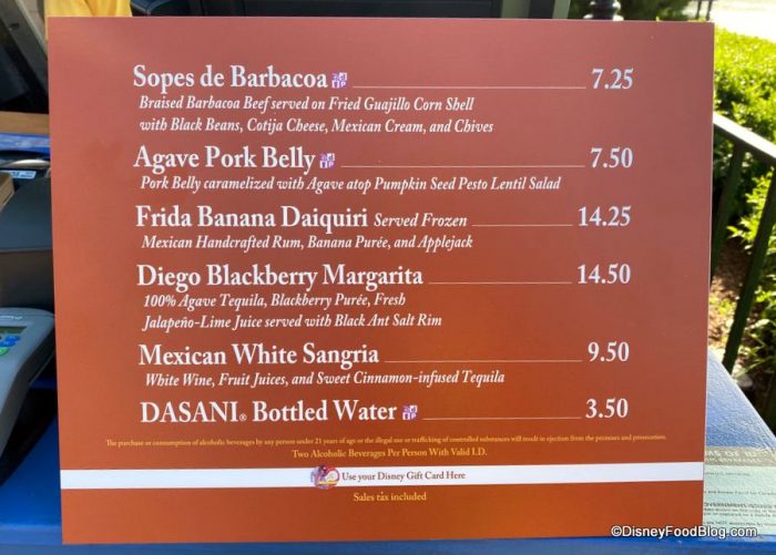- Mexican White Sangria: White Wine, Fruit Juices and Sweet Cinnamon-infused Tequila — $9.50