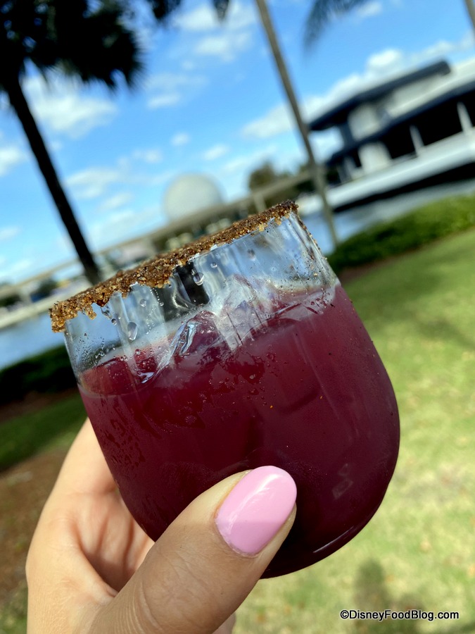 Diego Blackberry Margarita: 100% Agave Tequila, Blackberry Purée, Fresh Jalapeño-Lime Juice served with Black Ant Salt Rim