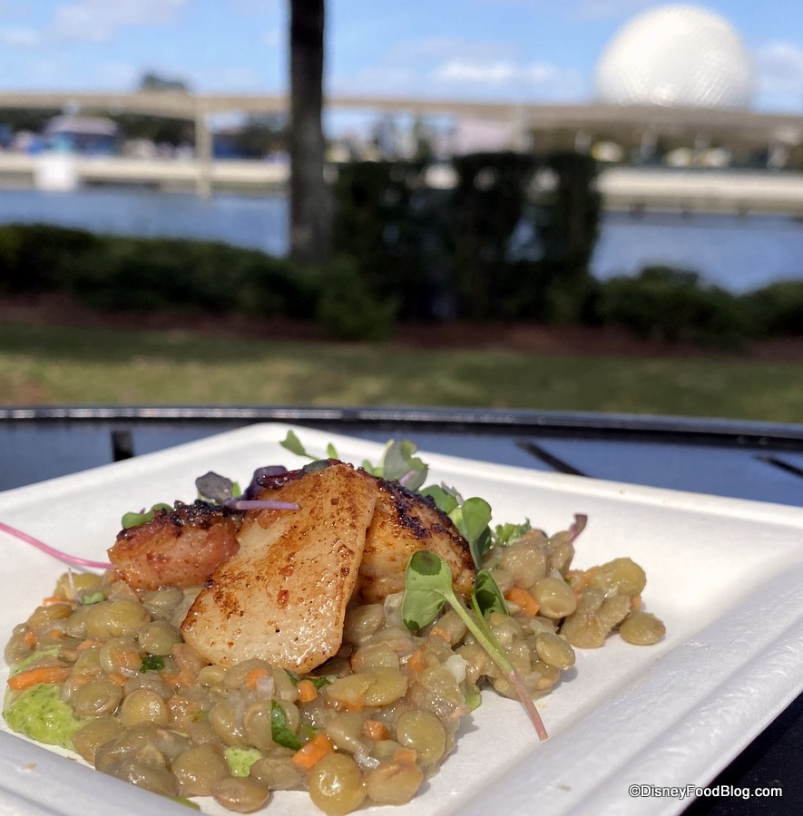 - Agave Pork Belly: Pork Belly caramelized with Agave atop Pumpkin Seed Pesto Lentil Salad — $7.50, DDP Snack Credit Eligible