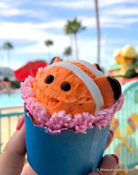 But when Christmas finally ends, we begin to see new snacks trickle in, and today we spotted this new, adorable Nemo Cupcake at Disney World!
