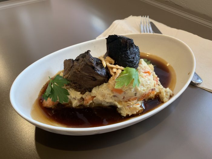 AND back in June, ABC Commissary underwent a refurbishment and made way for an all-new dinner dining experience that you can now make reservations for (It still remains a Quick Service location though! Think of it like how you can book Advance Dining Reservations at Be Our Guest for Quick Service breakfast and lunch.). The recent updates included new self-service beverage stations, updated decor, and a new dinner dish that features Pot Roast served over mashed potatoes and root vegetables with crispy onion strings.