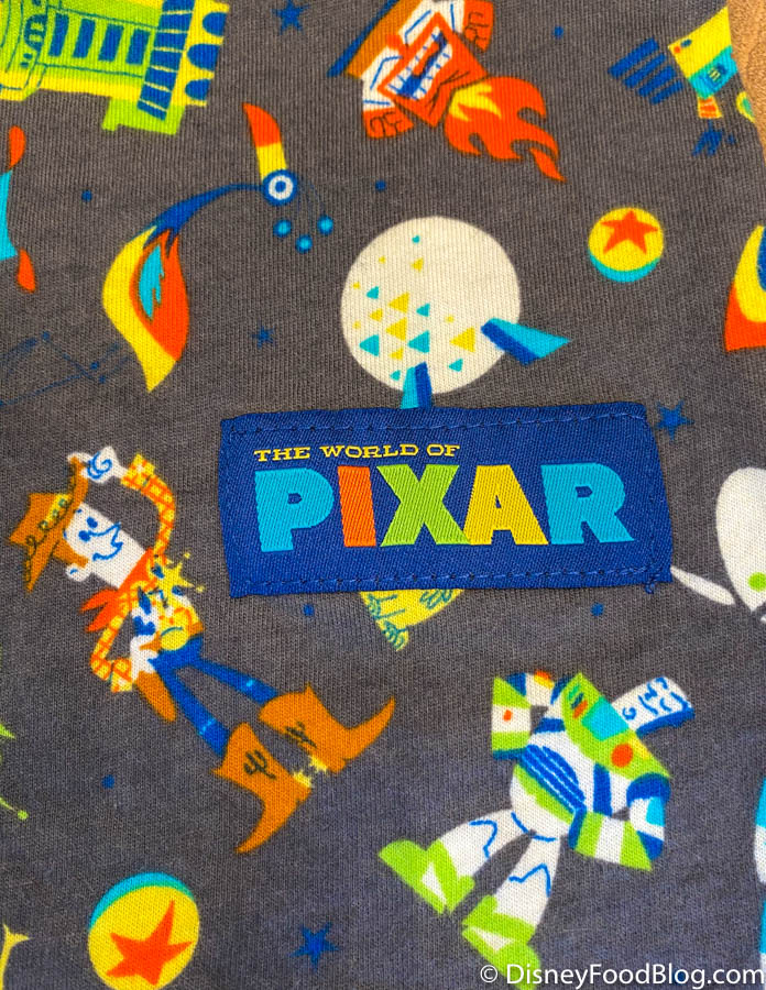 We love the little details, like this patch on the front bottom right that says “World of Pixar”!