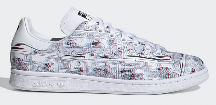And while we already shared with you the new Disney x Gucci collection, today we’re shifting our focus to this new line of Mickey Mouse x Adidas shoes! But wait — why are they so blurry? It’s because you need special 3-D glasses to read the classic Disney comic strips printed on them!