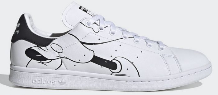 The final pair of Mickey Mouse x Adidas Stan Smiths features a design similar to the one shown on the Superstars but in a simple color story of black and white! We think they’re the most sophisticated ones in the bunch!