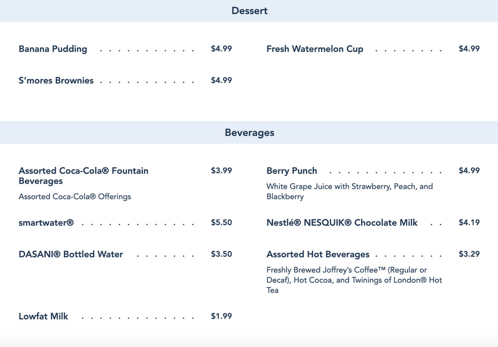 We hope you saved room for dessert! What barbecue joint would be complete without a Banana Pudding on its menu — the perfect way to finish a meal of tasty meats! They’ll also be a S’mores Brownie and Fresh Watermelon Cup — for folks who prefer lighter fare! Beverages include an assortment of Fountain, Bottled and Hot drinks.