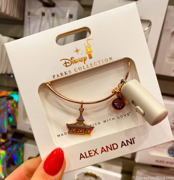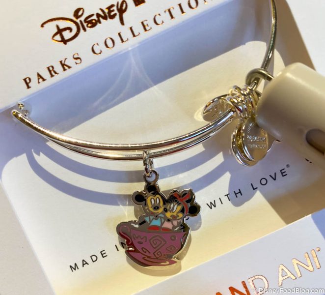 And there’s a TON of new merch at Main Street Emporium. For instance, there are three new Alex and Ani bracelets for $44.99 each. There’s this romantic Mickey and Minnie Teacup one…