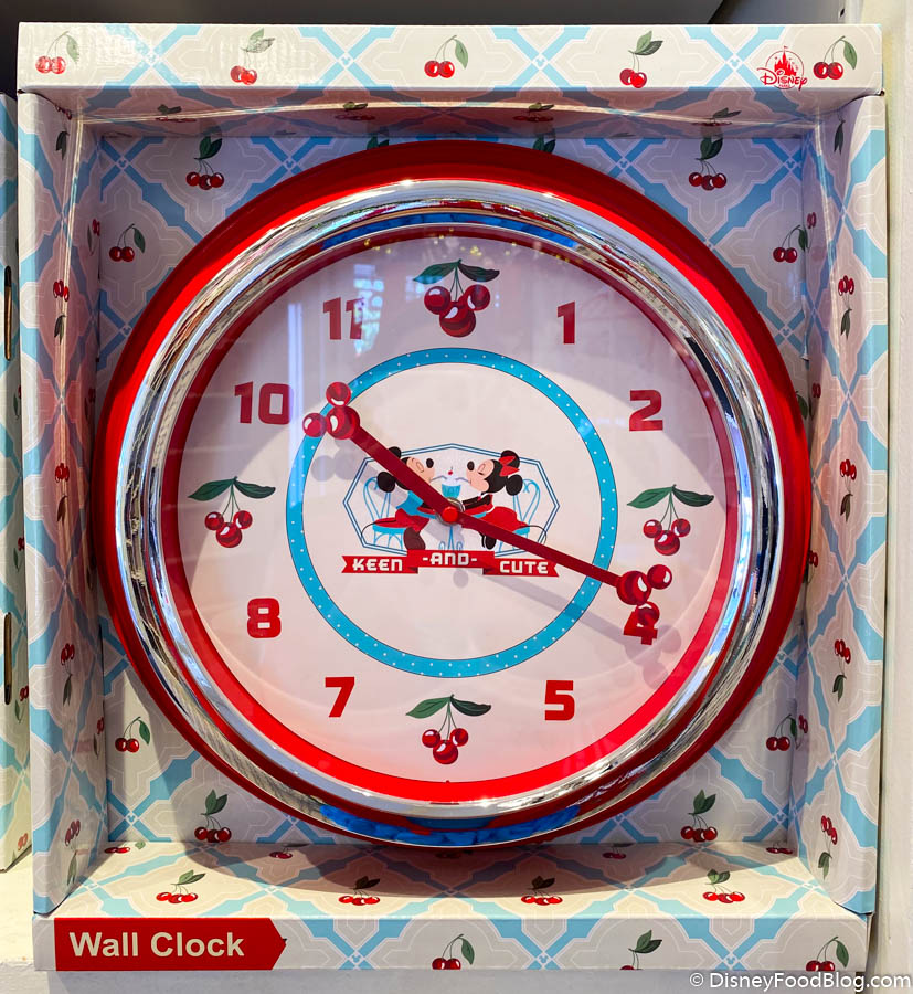 Now, on to merchandise! We spotted this sweet new Keen and Cute Wall Clock at Main Street Confectionery for $49.99. It features Mickey and Minnie sharing a milkshake! How cute!
