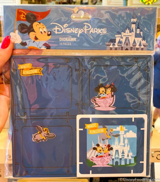 And as part of the new “Park Life” line of merch, there are these four cute new mini dioramas for $16.99 each. This one features Cinderella Castle and Dumbo as a tribute to Magic Kingdom.