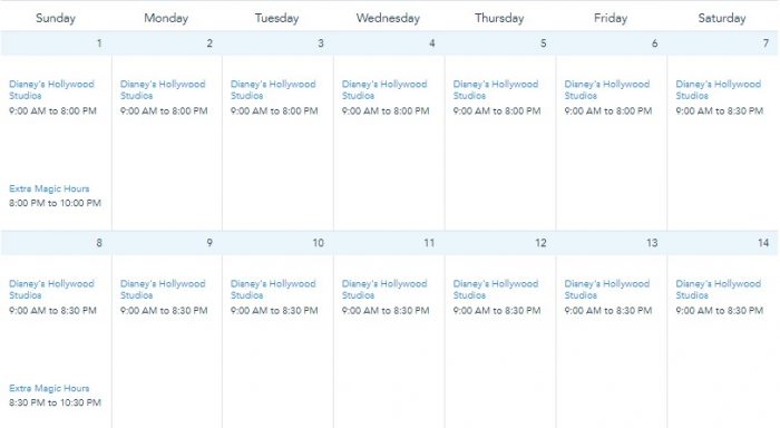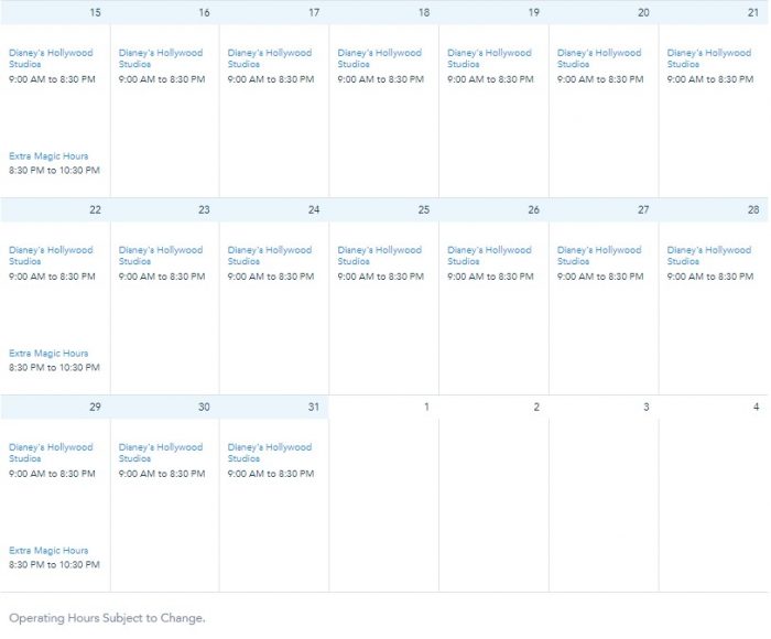 Hi! Where do you find the operating hours in the monthly calendar format? I can only find the hours day to day on the Disney website. Thanks!